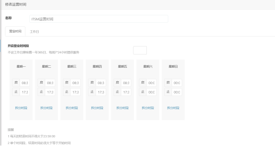 ? 提供基于工作時間和非工作時間的SLA設置功能,支持精確定義每天多個時段的上下班時間