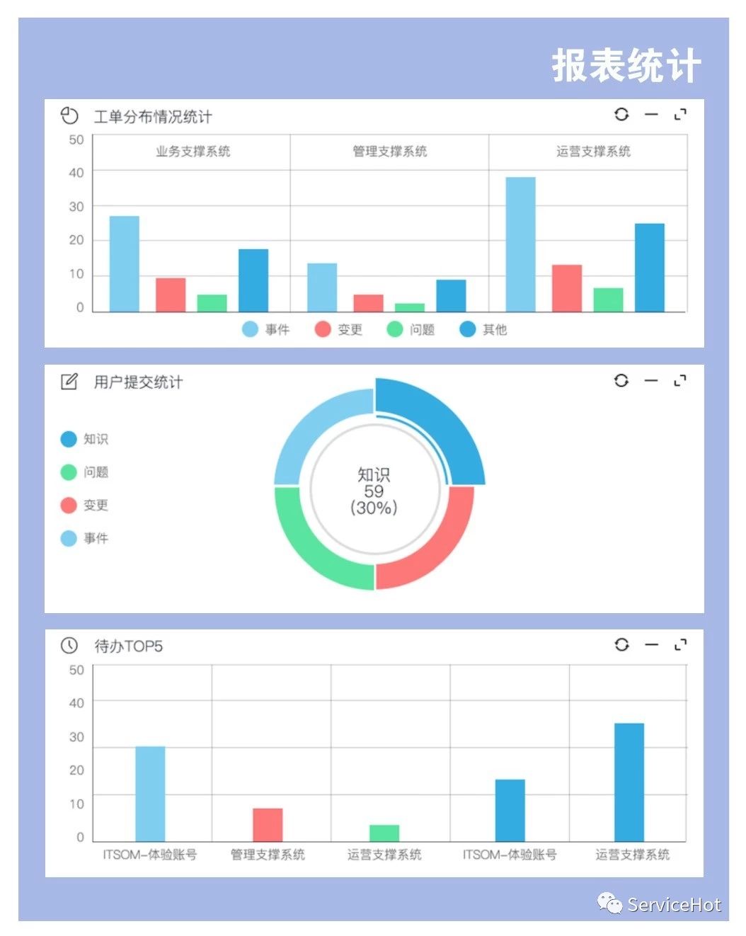 • 提供多維度服務報表,呈現運維工作價值。產品亮點