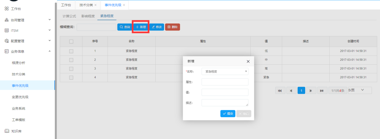 事件優(yōu)先級,表明了事件的優(yōu)先程度,包括緊急、高、中、低等,并各有相對應(yīng)的處理時效。