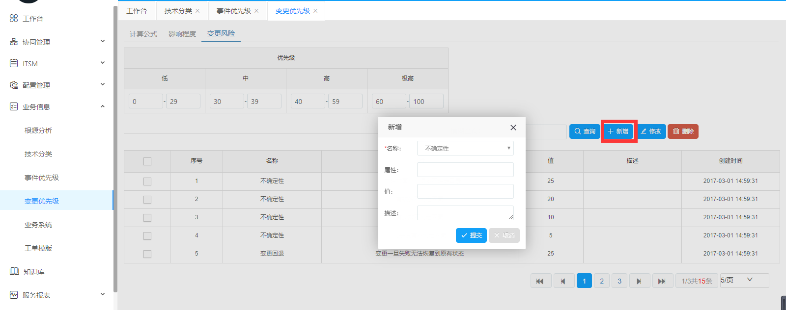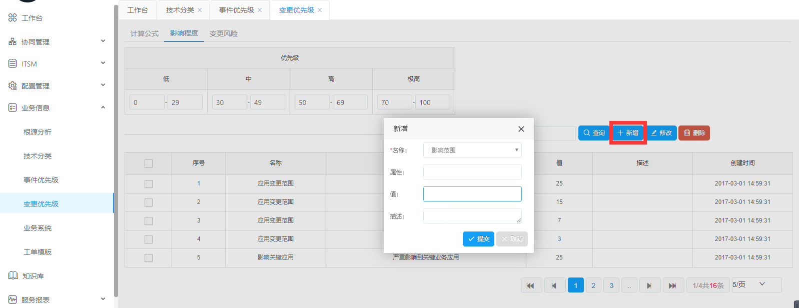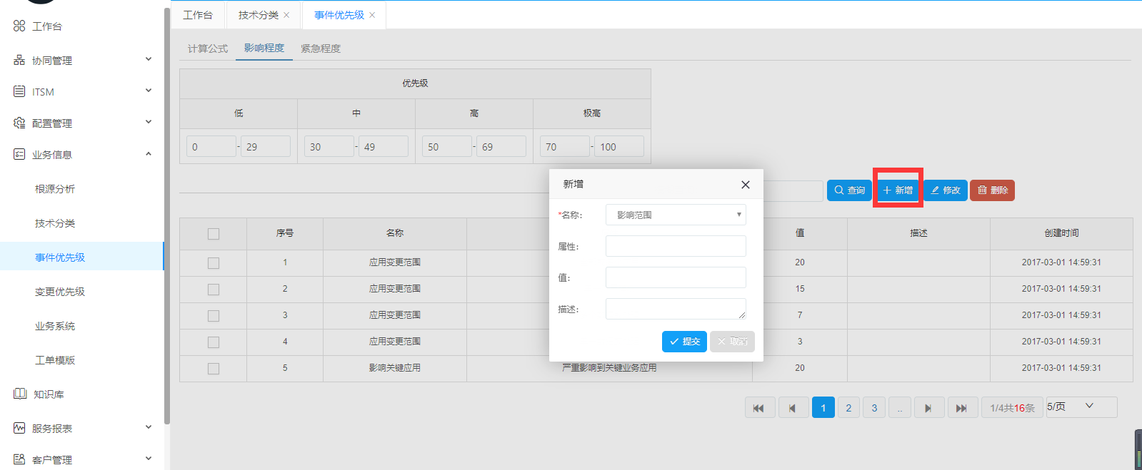 影響程度。可選擇查詢、新增、修改、刪除,按要求填寫必填項,根據(jù)實際需要填寫。如果確認(rèn)點擊提交,放棄點擊取消