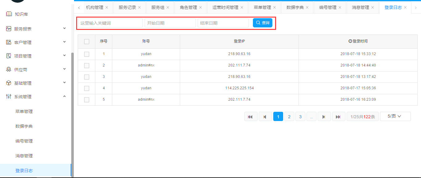 可通過(guò)關(guān)鍵詞、開(kāi)始日期以及結(jié)束日期檢索到相應(yīng)人員的系統(tǒng)登錄情況