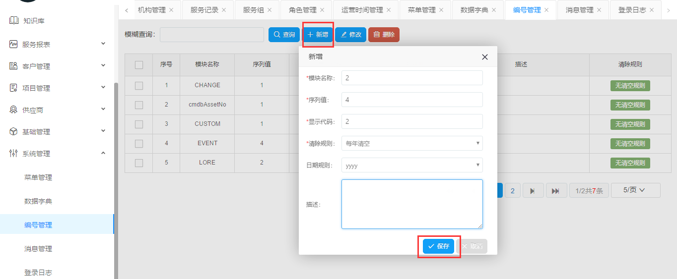 點(diǎn)擊新增按鈕,新增編號(hào),企業(yè)根據(jù)實(shí)際情況填寫(xiě)完成點(diǎn)擊“保存”即可