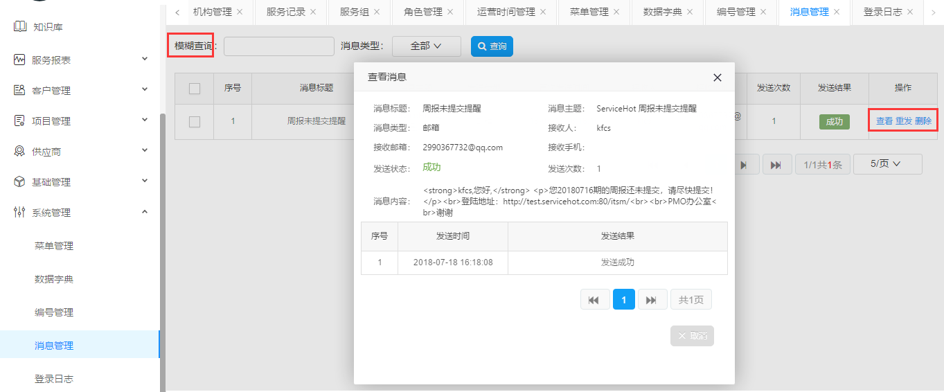 可以通過(guò)檢索功能對(duì)相應(yīng)的消息進(jìn)行查看、重發(fā)、刪除等操作