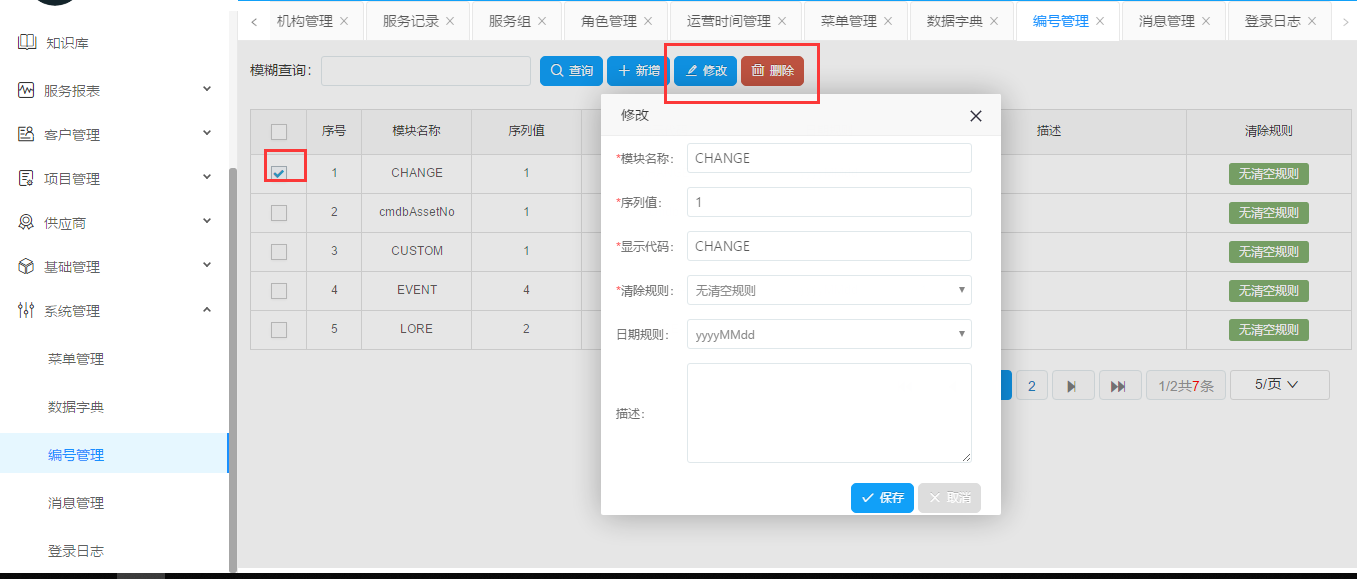 選中編號(hào),可對(duì)其進(jìn)行修改、刪除等操作