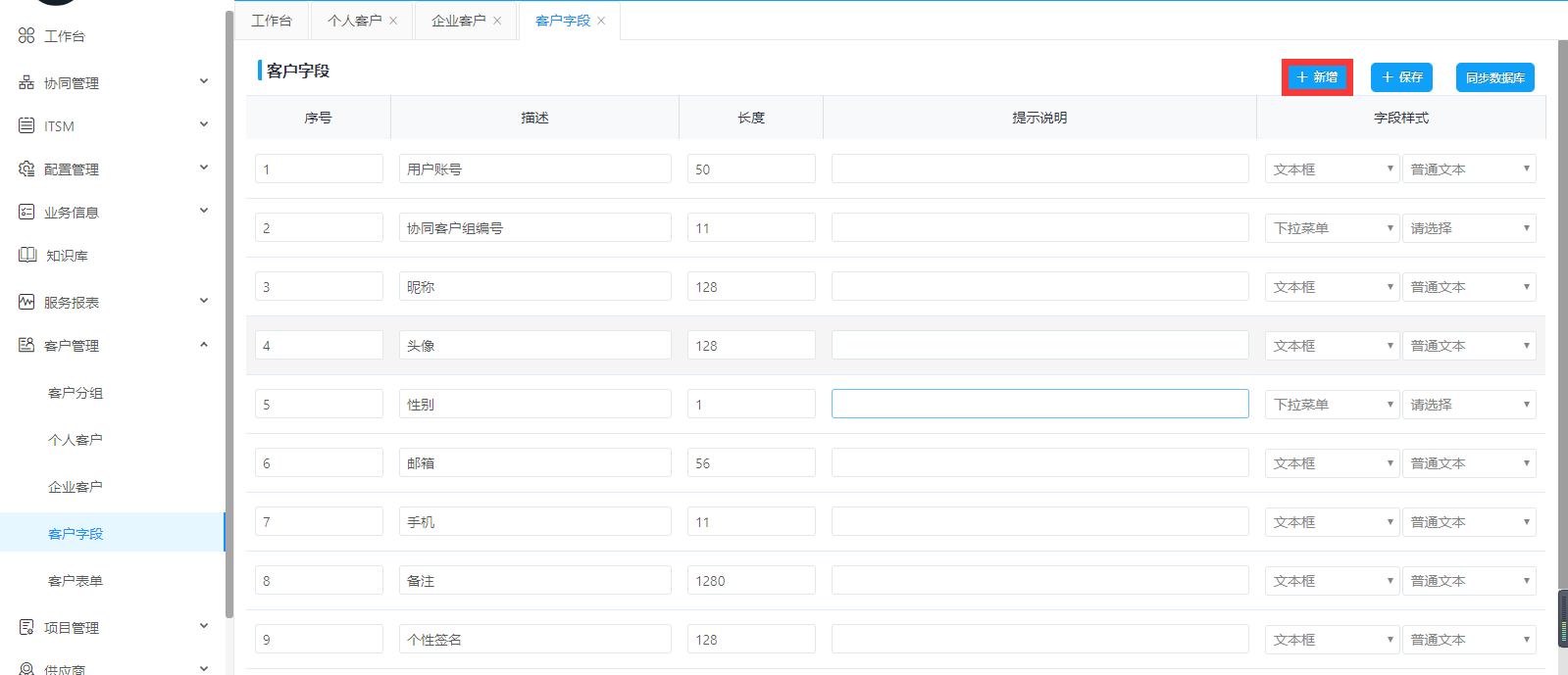 客戶(hù)字段主要是對(duì)客戶(hù)賬號(hào)信息的輸入設(shè)置字段管理。可以設(shè)置賬號(hào),昵稱(chēng),郵箱,手機(jī),分組,微信等。