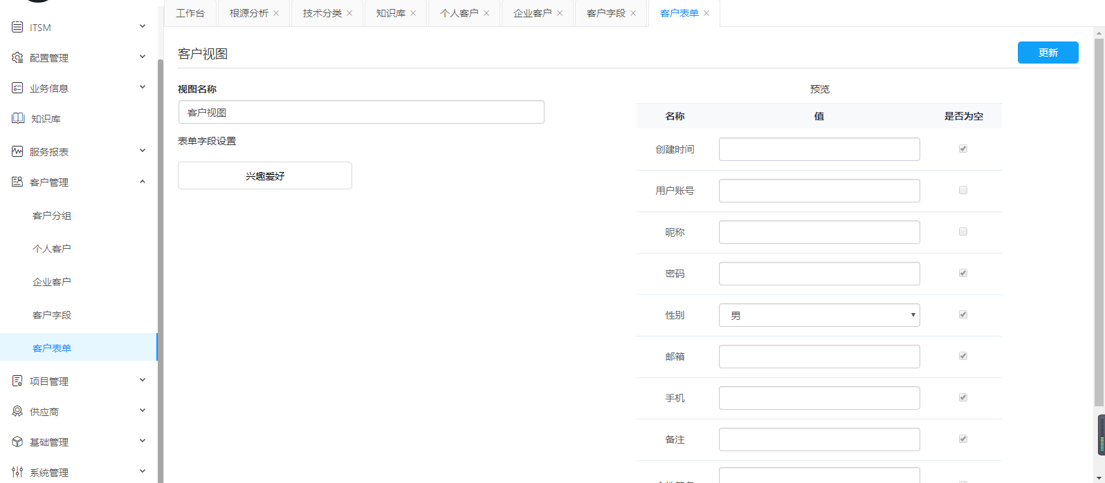客戶(hù)表單主要是由客戶(hù)字段生成,選擇需要的字段來(lái)生成客戶(hù)表單。