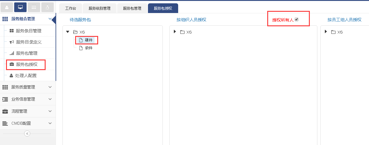 服務包授權,授權之后用戶才有權限申請流程工單