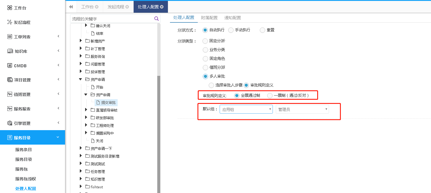 會簽功能即多人可以同時對工單進行審批,通過或反對。