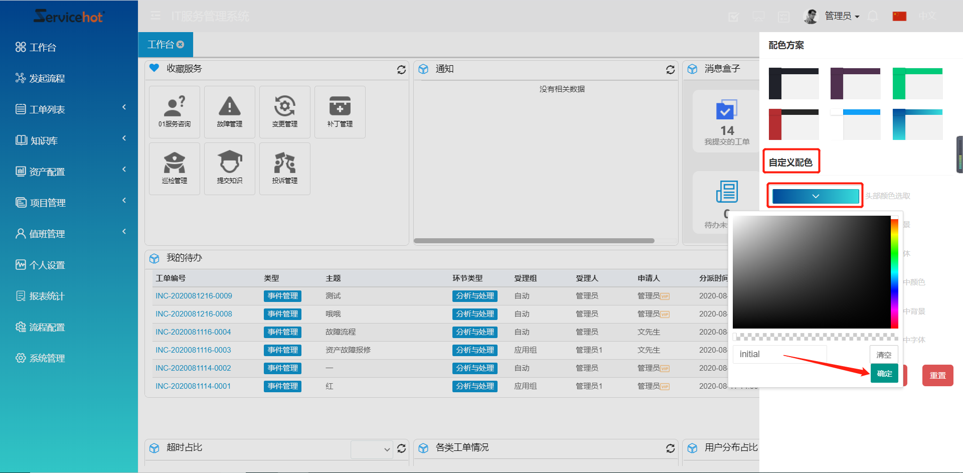 系統提供自定義配色主題,用戶可通過視覺愛好對系統主題進行配色