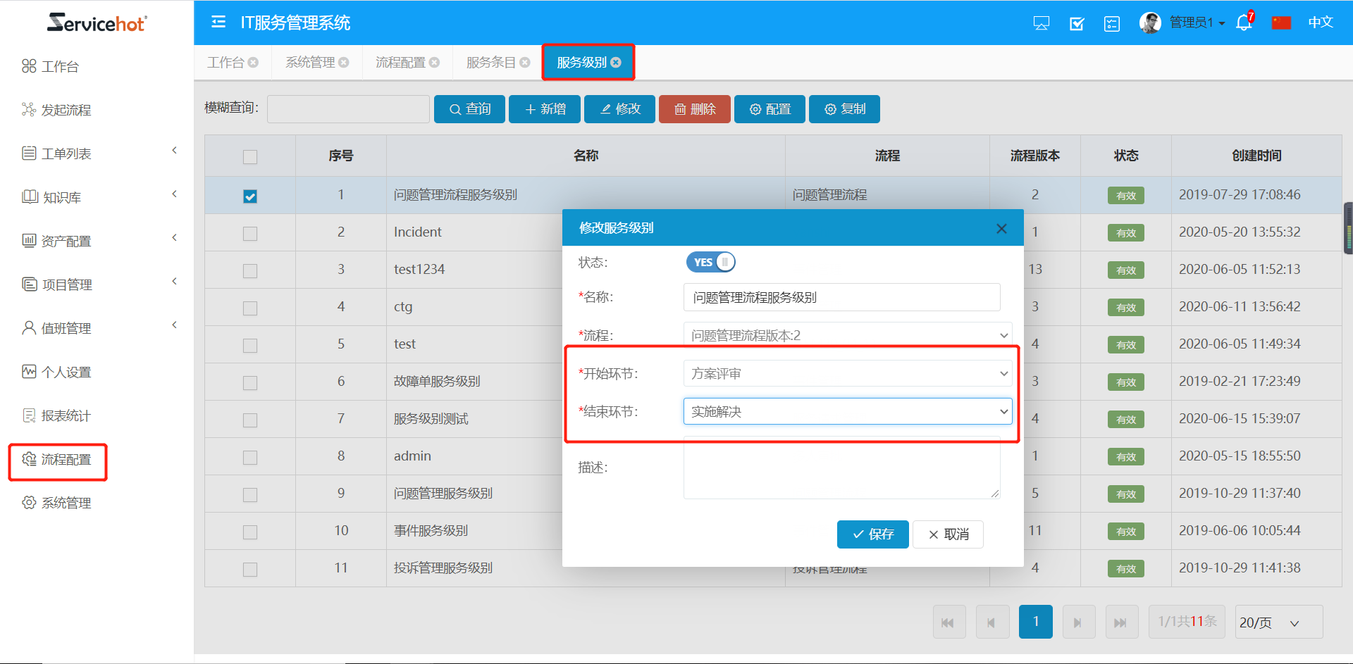 在【流程配置-服務(wù)條目】中選擇已經(jīng)配置好的服務(wù)級別告警。