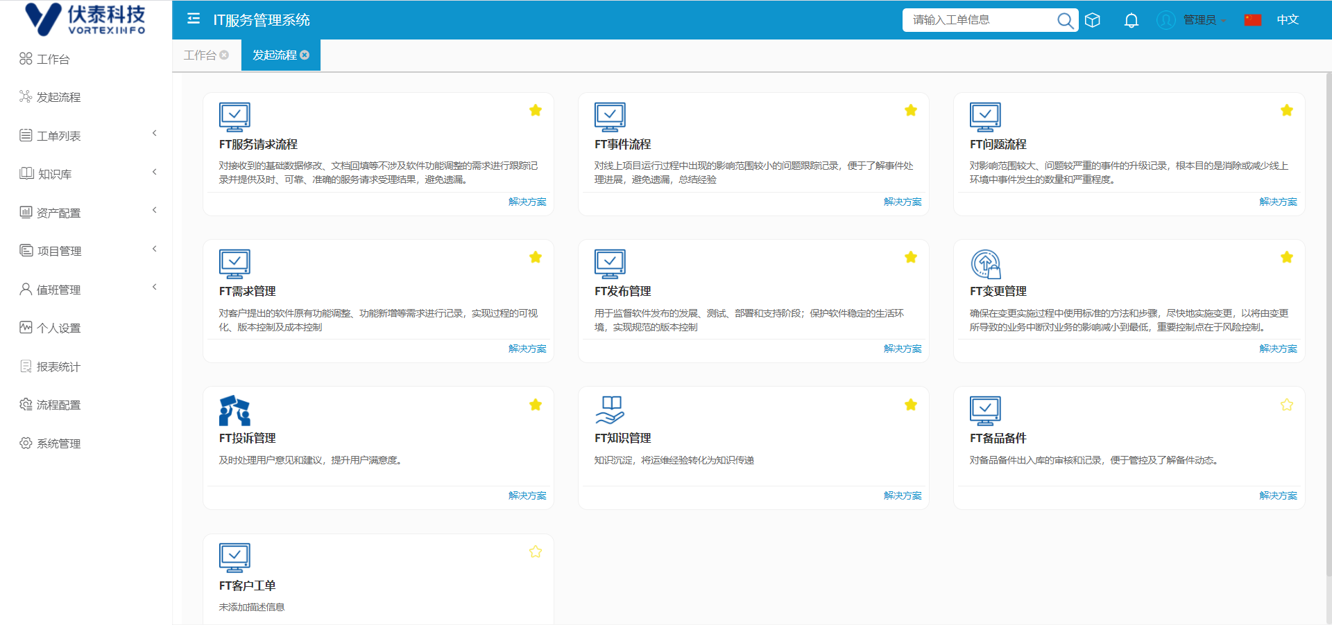 通過項(xiàng)目維度可以對(duì)咨詢、報(bào)修,變更等服務(wù)流程進(jìn)行統(tǒng)計(jì)分析,提升IT項(xiàng)目管控能力;