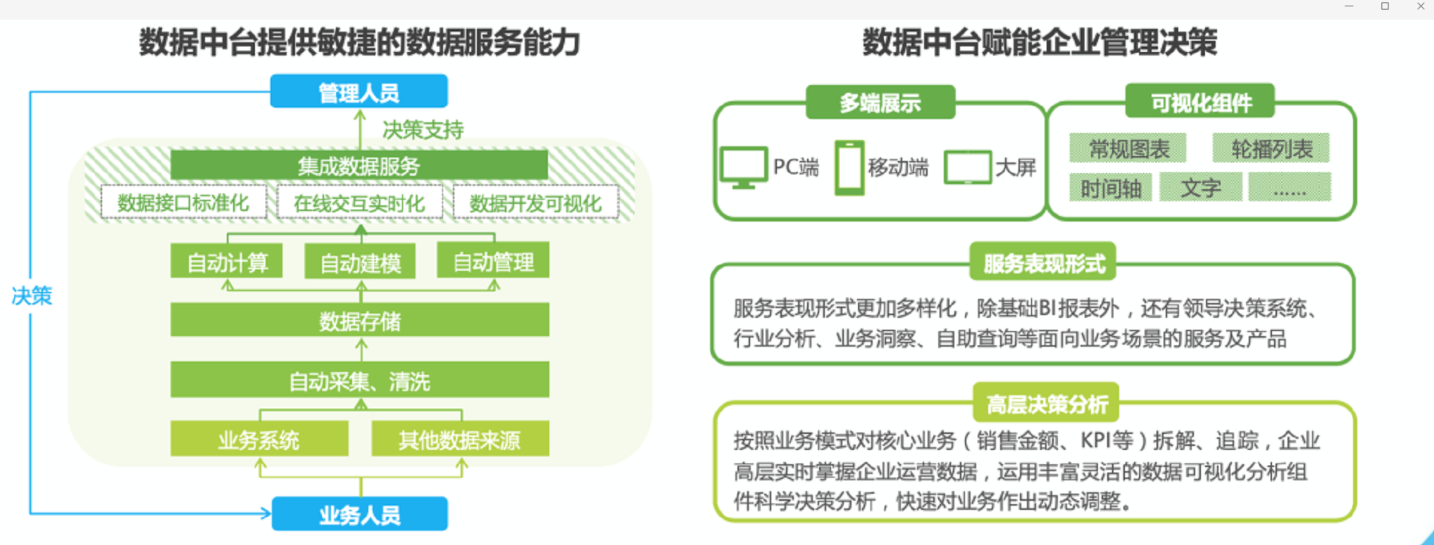 后端的業務數據,本地的會員數據,零散的銷售數據以及各個軟件平臺上的運營數據。當我們在講數據即資產時,如果你的數據是孤立的,無法串聯,無法合并,無法識別的,那么這數據在我看來是無效的信息而已,根本稱不上有價值的數據。我們舉個例子。假如您通過頭條,小紅書,抖音以及現行廣告投放積累了一批粉絲轉化了產品。那么用戶的基礎信息,消費信息,日常興趣標簽信息,地域信息等,都散落在不同的平臺上。這些數據我稱之為:”平臺粉絲“而不是品牌粉絲。這些粉絲的忠誠度是在平臺,而不是品牌。因為他們通過平臺的視頻和內容轉化了成交。用戶記住的是,抖音上買的東西質量還不錯,頭條上有一門課程了等。做為企業品牌方,需要獲取用戶的檔案,會員標簽和畫像,一定需要獲取全面完整的,有價值的數據,希望通過平臺上的大流量將用戶轉化到本人的品牌私域流量池內。數據中臺不是簡單的一套軟件系統或者標準化產品,更多的是一種強調資源整合、 集中配置、能力沉淀、分步執行的運作機制,是一系列數據組件或模塊的集合,為 企業數據治理效率的提升、業務流程與組織架構的升級、運營與決策的精細化賦能。多數企業在過去的信息化建設過程中,有一些遺留的數據問題待解決:1、數據來源和定義不一致,導致同一個用戶的信息在不同的系統內可能標示不同,導致不同系統的打通花費了大量的時間在數據清洗上;2、不同信息系統的數據為了保證及時,準確性以及完整性,需要進行多系統打通,打通有技術門檻;3、各個部門對數據共享意愿度導致數據共享推動過程中會產生阻力;搭建數據中臺,可以打破數據孤島問題,釋放數據價值。