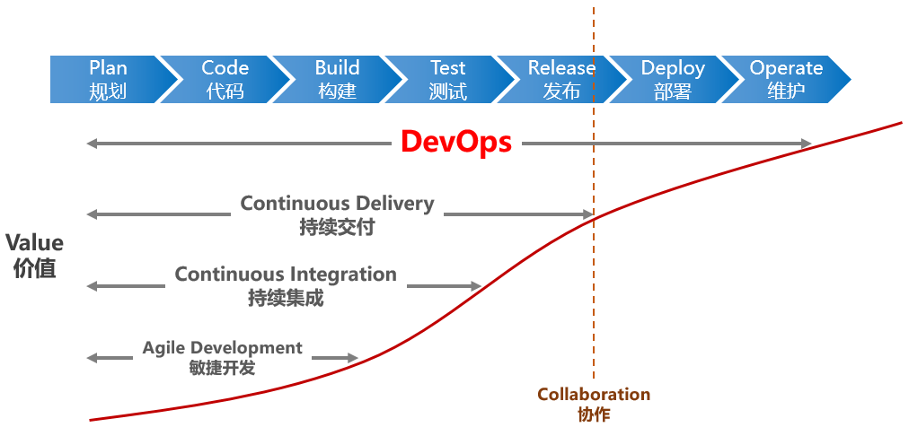 下面這張圖,更明顯地說(shuō)明了DevOps所處的位置,還有它的價(jià)值: